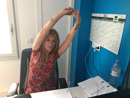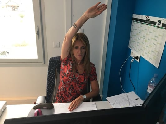 - Nous avons un premier service « Ce que je peux faire lorsque… » (écrire un mail, répondre au téléphone, l’arrivée à mon poste de travail…). Nous passons de collaborateur en collaborateur, de bureau en bureau afin d’effectuer l’exercice adapté à la personne et à la nature du poste qu’il soit debout, assis, derrière une machine. En fonction du nombre de collaborateurs, nous intervenons ½ journée par semaine.