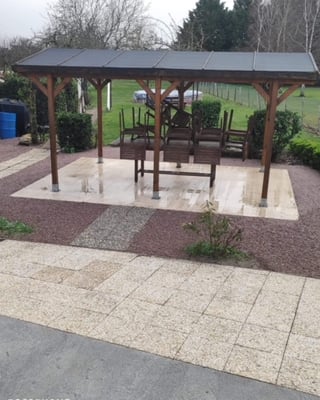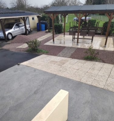 de différents coloris. Nous faisons aussi le décapage, l’aménagement de clôtures et des cours ou accès en enrobé noir ou de couleur rouge.