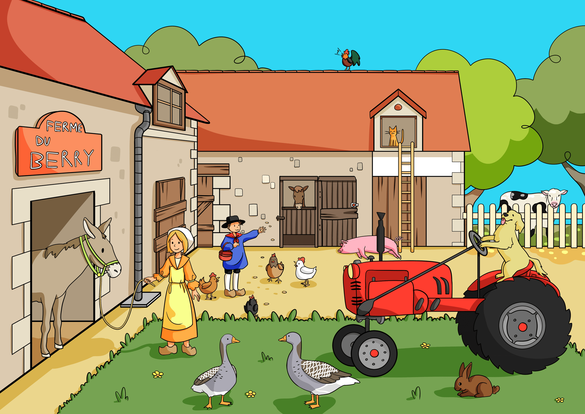 Un album de coloriage destiné aux enfants mettant en avant les paysages et le patrimoine architectural de la région du Berry dans le département de l'Indre.