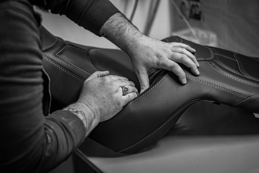 Notre équipe compte maintenant 8 employés compétents et 2 apprenties. Nos experts internes se spécialisent dans divers aspects de la sellerie et de la conception. Par exemple, Laura, notre apprentie primée, excelle dans la couture de précision, tandis que Djenny se spécialise dans la mousse et la création de produits innovants. Grâce à leur expertise combinée, nous sommes en mesure de proposer plus que de la sellerie, la réalisation de vos projets, prototypes et personnalisations