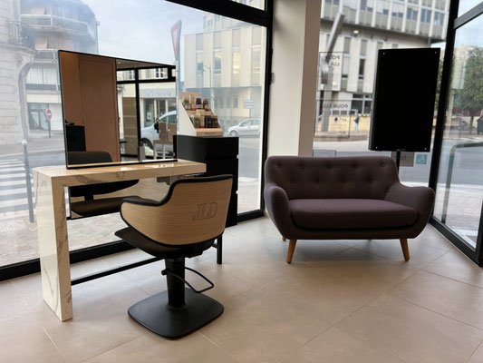 Oui, entièrement ! Nous avons adopté la charte Jean Louis David : un cadre plus moderne, des tons plus doux, une atmosphère élégante où chacun se sent bien. L’espace soins est désormais à l’abri des regards pour plus d’intimité. Et nous avons installé un bar à styles, une nouveauté très appréciée : il permet de venir sur rendez-vous pour un coiffage express ou un wavy par exemple.