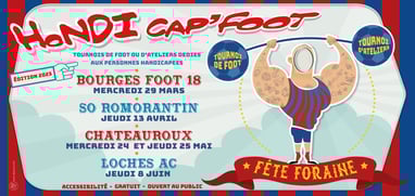 La Berrichonne Football de Châteauroux organise pour sa 15e année un événement intitulé HoNDI CAP’FOOT dédié aux personnes en situation de handicap mental et/ou physique. Ce sera le mercredi 24 et le jeudi 25 mai au Stade Gaston PETIT sur le thème de la fête foraine.
