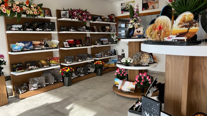 En effet, notre service marbrerie vous propose bien sûr la réalisation de caveaux, de monuments, la pose, mais aussi l’entretien des sépultures et le fleurissement. On vous propose également un large choix en matière d’ornements, plaques, bronzes, vases, jardineries et fleurs (naturelles ou artificielles).