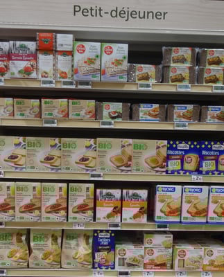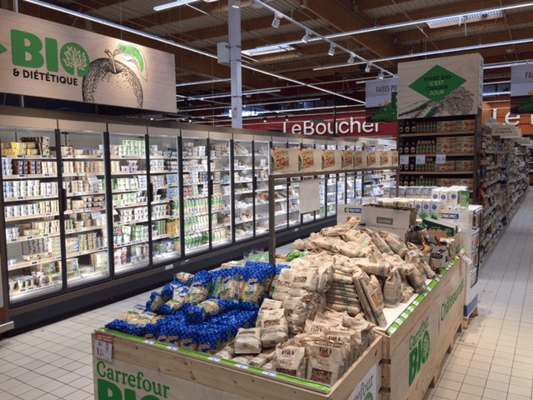 C’est tout l’intérêt de ce nouvel espace ! Faciliter l’identification des produits. Mais pour répondre à la question, on reconnaît les produits bio au logo européen apposé depuis 2010. Au sein de notre hypermarché, nous proposons aux clients les produits de la marque Carrefour BIO, mais aussi de plusieurs marques telles que Jardin BIO, Bjorg, Naturela, etc.