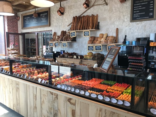 Il y a un fournil apparent qui permet de voir nos boulangers à l’ouvrage. Mais aussi une vitrine proposant près de 20 sortes de pâtisseries différentes chaque jour. Ainsi que plus de 30 recettes salées confectionnées à partir de produits frais et élaborés tous les jours dans nos boulangeries (salades, burgers, sandwichs chauds et froids, quiches, fougasses, etc.). Vous y trouverez également des pains confectionnés avec de la farine de tradition française, sans additifs. Des produits pour tous les moments de la journée : petit-déjeuner, déjeuner, goûter et dîner. Et des produits « signatures » comme la brioche feuilletée, les macarons, ou encore le flan pâtissier, etc.