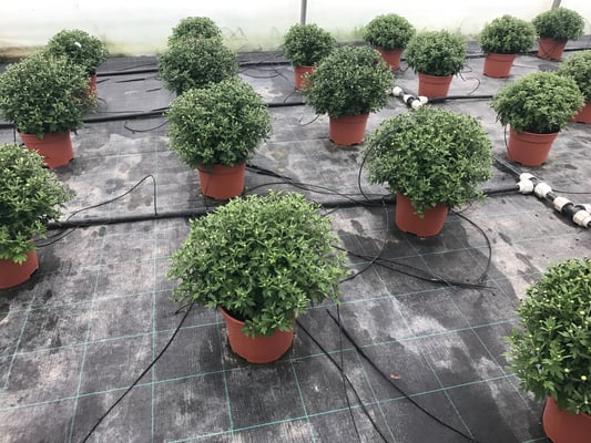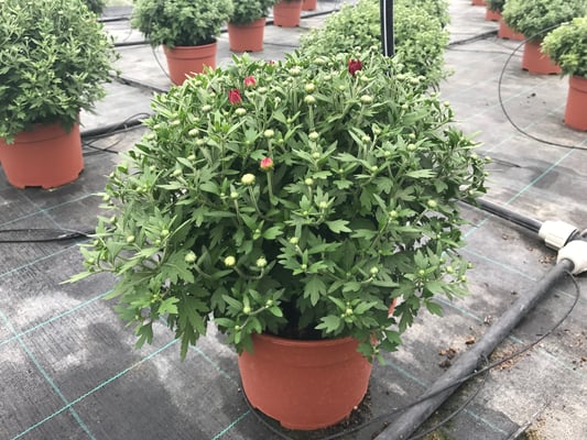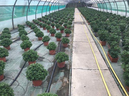 Pour la Toussaint, nous proposons un grand choix de Chrysanthèmes fleuris, et de grandes variétés de fleurs emblématiques de cette période. Notez que, les chrysanthèmes de nos serres sont préparés depuis le mois de juin ! Ils seront magnifiquement fleuris pour la Toussaint. D’ailleurs, la photo ci-dessous (prise en septembre) montre les chrysanthèmes en train de pousser dans nos serres.