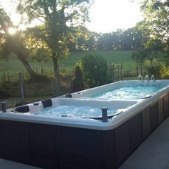 BBT : Nous proposons une gamme de spas pour activité physique et détente. Je vous présente le nouveau spa " sylver 60" pour 6 personnes (1 place allongée, 5 places assises) à un prix exceptionnel de 6990 € TTC (offre jusqu' au 25/06/2015). Balnéothérapie préventive ou de détente : C’est ça un SPA ! Un Spa de Nage, c’est la possibilité de faire cohabiter dans un même espace une piscine et un spa. Le système de nage à contre-courant permet d’offrir une puissance pouvant satisfaire le plus sportif des nageurs, des joggeurs ou des passionnés de l’aquagym. Pour la partie spa, il y a de puissants jets de massage.